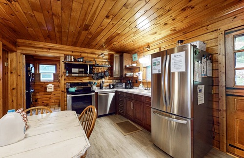swim, fish, and rock-hound along the shores, or simply sit back and take in the breathtaking waterfront views at this seneca lake log cabin Offering an authentic taste of the Finger Lakes, this rustic one-acre retreat sits along 50 feet of direct lake frontage and boasts private highlights like a large deck, a dock, and a hot tub. Board games, books, and art supplies are also provided for low-key family fun. You'll be within easy reach of a public boat launch, along with several local wineries along the popular Wine Trail.