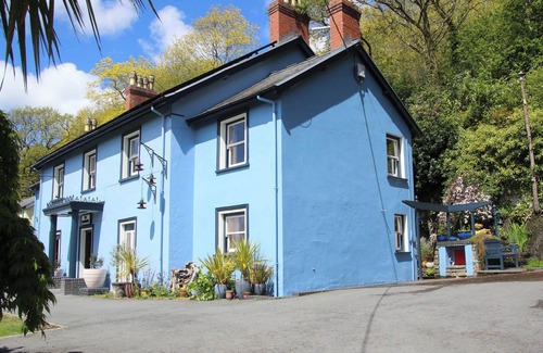 The wing of a house looking over the Melindwr Valley with lovely walks from the door. Near Aberystwyth and Cardigan Bay.. 1 step to entrance.