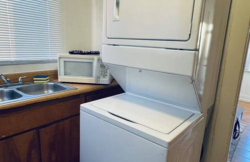 this apartment boasts 1 inviting bedroom Free WiFi, TV with Roku, AC, heating, and a washing machine & dryer are available for guests. We're happy to assist with any questions about your stay..