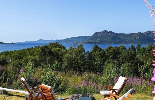 Comfortable holiday home in a beautiful coastal landscape by the Eidsfjord. View plot. Good hiking opportunities by the fjord and in the mountains. Great for children. Good starting point for car trips in Vesterålen and Lofoten. The house, which is located on a ridge with magnificent views of the beautiful Eidsfjord, was built in 1984 and renovated in 2011. Nicely furnished and well equipped with everything on one level. Consists of a large living room, kitchen, bathroom and one toilet room. 5 bedrooms, where 2 have a double bed, one has two pcs. family berths that are 1.20 m wide downstairs and single berths upstairs. One bedroom has a double bed (sofa bed). Free internet with good capacity and smart TV in the living room. A soapstone oven that provides warm and comfortable heat on cold days. The large windows in the living room provide a great view and a feeling of close contact with nature. On the large terrace you can enjoy your morning coffee during sunrise. On the other side of the house is a panoramic view of the beautiful Eidsfjord and the mountain Reka which with its special rock formation is one of the area's tourist attractions. Here is a barbecue / campfire and during the sunset and when the midnight sun shines in the spring and summer, you can sit all night and enjoy the beautiful sight. In winter, the northern lights that dance in all colors of the sky are a memory you will hardly forget. The area is child-friendly and with great hiking opportunities for the whole family along the fjord and in the mountains with magnificent views. The fjord is rich in fish and there are several fishing lakes in the area. Good hunting ground for small game hunting such as grouse. Further information about hunting / prices for hunting licenses can be obtained by contacting DanCenter. Good starting point for day trips around Vesterålen and Lofoten. Experience a whale safari on Andenes, where the big whales can be experienced up close out at sea. Parking space by the house. 6 km to grocery store.
