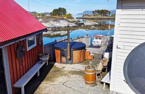Large holiday home on private island 400 meters from the mainland. Beautiful nature, room for 12. The main floor has an open kitchen/dining room and with wood-burning stove. Apple TV with Norwegian, German, and international channels. The first floor consist of 2 apartments, each with a living room and kitchenette. The living rooms have sleeping alcoves with two beds and thick curtains facing the living room. In total there are 12 beds, 5 in the smallest and 7 in the largest apartment. Exit from common room to the terrace, where the sun can be enjoyed until late in the evening. 4 bathrooms with shower/shower cabinet. Several great outdoor areas with terraces and barbecue areas around the main building and in the terrain. In the boathouse, there is a long table for dinners. After a wonderful meal with home-caught seafood, you can enjoy the wood-fired hot tub, perhaps with bubbles both the glass? Swimming opportunities in the sea via one of many ladders. Filleting bench with light and running water in the boathouse. boats for rent when booking the holiday home: 1x 21 ft øien 620f with small cabin 1-2 persons, 90 hp suzuki , gps/chart plotter/sonar and 8 rod holders 1x 24 norwest740 with 86 hp engine, gps/chart plotter/sounder, closed cabin with toilet 2x kayaks 1x canoe 1x pedalos