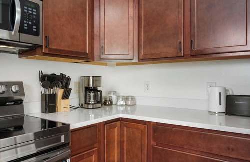 the kitchen offers stainless steel appliances and essentials for you to feel at home!