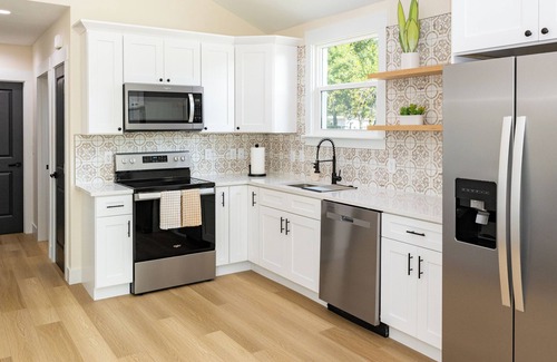 this 2-bedroom, 1-bathroom home blends modern comfort with laid-back boho vibes