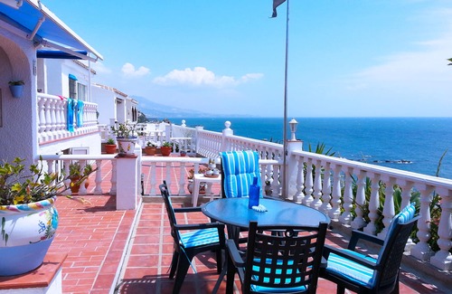 CHALÉ TOWNHOUSE between Fuengirola and Mijas Costa (Málaga). Facing the sea, just 75 meters away and next to a lighthouse. Bars, restaurant and supermarket within 100 meters. Sea views from terrace, living room and bedrooms. Walking to the beach there are about 300 meters. The beach is sandy with a beach bar and a lifeguard house. With clear days you can see the coast of Africa. Gibraltar and Sierra Nevada. It has 3 bedrooms and two bathrooms. Capacity for 6 people. Community pool, community parking at the entrance door, FREE WIFI, tv, washing machine, microwave, hob, large fridge, iron, etc., large terrace with dining table outside, barbecue on terrace, large entrance patio And sun loungers for sunbathe. prices: