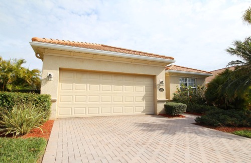 you’ll enjoy an active florida lifestyle in this immaculately maintained "golf included" three bedroom, two bath home with a pool The open floor plan home is located in the prestigious gated golf community - River Strand Golf & Country Club in Bradenton, Florida. The lushly surrounded screened lanai affords much privacy for tropical outdoor living. The Southern exposure to the rear lake area provides views of Florida’s nature, birds & other wildlife. Its peace & serenity is perfect for entertaining, grilling or just relaxing in pool or Jacuzzi. Fully furnished and equipped lovely home has a large kitchen and upgraded hardwood cabinets with stainless steel appliances. Master bedroom has directly access to lanai, walk-in closet and amazing bathroom with tub and walk-in shower. The home is fully air-conditioned / heated with ceiling fans throughout. The laundry room features large capacity washer and dryer. The home also includes a spacious 2-car garage. The home is located just a minutes by car or golf cart from Golf Clubhouse with fully equipped fitness, gourmet restaurant, main pool with tiki bar and 8 tennis courts.