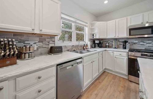 cook, dine, and unwind in our fully stocked, high quality kitchen, designed with both style and functionality in mind Featuring modern stainless steel appliances and premium cookware, it's the perfect space to prepare meals for family and friends. Start your day with a fresh cup of coffee using the drip coffee maker, French press, or convenient K-Cup machine — the choice is yours.