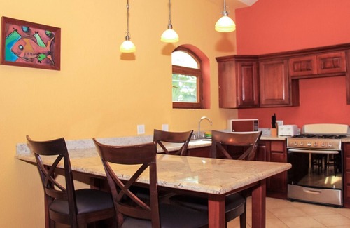 This very convenient and beautiful 2 bedroom/2 bathroom villa is located one block from the beachfront in the guarded & gated condominium community of Sunset Villas. It has a fully-equipped kitchen, a/c, cable tv, free wifi, access to the pool, which is located about a 7-minute walk away. This villa is near dive shops, restaurants & night life. Contact Splash Inn for discounted diving packages..