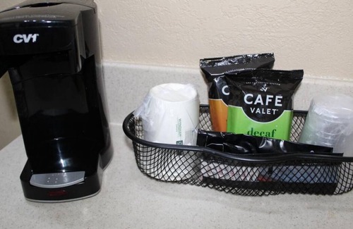 - coffee maker, mini fridge, microwave;