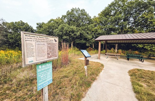 Get ready to relax in this cozy 2-bedroom cabin just north of Peoria near Dunlap. Fully fenced, private driveway, yard, and gated entrance on 4 acres. The whole property is yours! This Trailside retreat features 1 king bed and 2 twin beds (can convert to a split king if you prefer, just let us know upon booking), perfect for a small group of guests. With amenities like AC, heating, 2 wood burning fireplaces, & an outdoor fire pit & fireplace under a pavilion, you'll have everything you need for a comfortable stay. The 2 bathrooms come equipped with a shower/bathtub. Full laundry on site, as well as a deep freezer you can use. Starter supplies are provided such as soaps, toilet paper, & paper towels. linens are provided, with an extra set clean and ready!