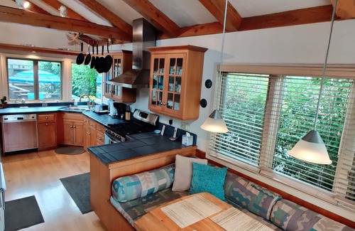 an architecturally unique and fabulous home with open beams and plenty of modern yet cozy style A short walk to Twin Lakes Beach. Just under 4 min. (less than 3 blocks) and you are at one of the most popular beaches in Santa Cruz (for both adults and kids; dogs allowed on leash). Also within walking distance is the great Crow’s Nest Restaurant, Mexican restaurant, coffee shop, gift shop and the harbor. Some guests even walk to the Santa Cruz Boardwalk. A short 5-min drive to downtown Capitola.