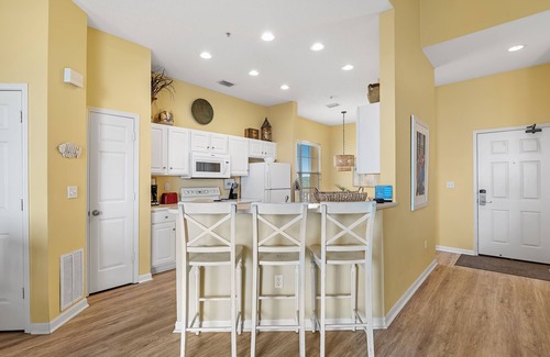 Decorated in a vibrant, cheerful color scheme, this spacious third-floor beachfront two-bedroom, two-bath, 1,450 sq. ft. condominium offers beautiful views of the Gulf of Mexico from the master bedroom, living area, and large balcony. Fully appointed kitchen includes eat-in breakfast area, ice maker, microwave, regular coffee pot, Keurig, dishwasher and laundry area with full-size washer and dryer.