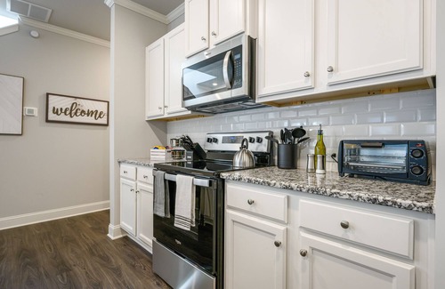 🍳 kitchen features brand-new stainless steel appliances & stocked cookware
