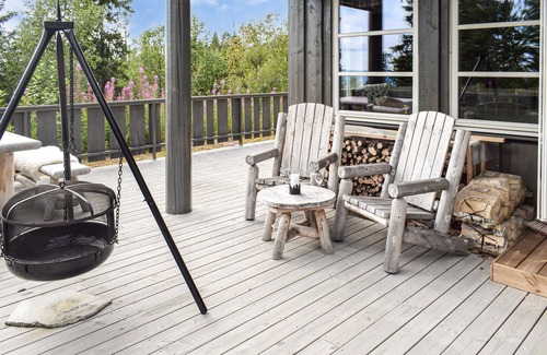 the holiday home offers you and your extended family a welcoming home to spend quality time together The crackling fireplace creates a warm atmosphere for cosy game nights, while the terrace with its magnificent view of nature is ideal for shared meals. Cook together or leave the second living room area to your children for film and games evenings. Plan your activities for the coming days in this peaceful and charming setting, which offers plenty of opportunities for relaxation and adventure. Barbecue together in the open air and enjoy the spacious terrace with a view.