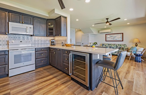 This extensively remodeled oceanfront townhome is the perfect home base for exploring Maui. With a brand-new kitchen, two updated bathrooms, a powder room, new flooring, fresh paint, and all-new furniture, it offers both comfort and style. The breathtaking ocean views remain as stunning as ever, providing a serene backdrop for your stay.