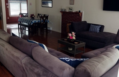 Spacious air conditioned/heated cozy family home that sleeps up to twelve people with a wonderful sunroom, and beautifully furnished oversized deck equipped with a new grill. Huge backyard with sea saw, swing set, firepit, hammock and picnic tables. Anywhere you sit in the backyard, you will find it to be serene and relaxing. You can also enjoy watching the children play and or your fuzzy friend run around.