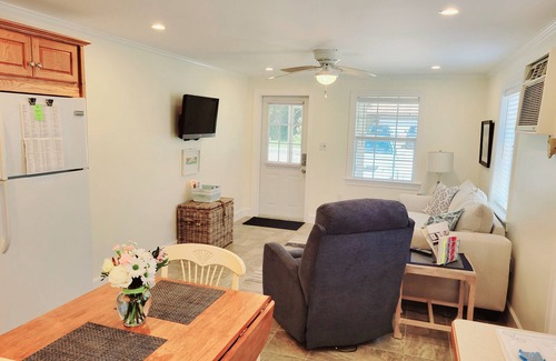 apprx 510 sq ft of indoor living space with private back patio and screened in front lanai Double doors separate the Kitchen and Living Rooms from the Bedroom and Bathroom. PRIVATE back yard patio. A partition separates THE BUNGALOW patio from THE COZY patio. Includes: PRIVATE patio w/chairs/table/shade umbrella, propane grill/propane included 2 beach chairs and beach umbrella, small cooler, queen bed in bedroom, all linens ,2 flat screen TV's, Xfinity Internet , DISH satellite TV (living rm)SMART TV in bedroom, Washer/Dryer, fully appointed kitchen (No Dishwasher) including microwave, Kcup and Auto drip coffee makers, fridge, stove and cooking utensils and a variety of spices.