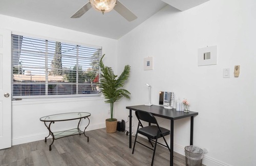 Enjoy our latest listing near Panorama Bluffs and Bakersfield College. A spacious 4-bedroom, 2-bathroom house is fully renovated and perfect for family, vacationers, business and health professionals alike. With five beds, floor mattress and sofa, the home can reasonably accommodate up to 9 guests. Fully furnished with modern amenities, including brand-new appliances such as 70" smart TV, central AC, washer, and dryer. A short drive to downtown and major hospitals and good access to Kern River Canyon..