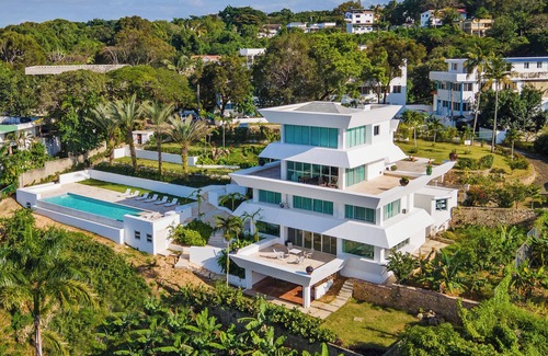 Perched on a hilltop overlooking the ocean, this luxurious 4-story villa feels like a private resort minutes from city life. Features panoramic ocean views, 5 bedrooms with AC and full bathrooms, and a stunning pool deck - your personal sunset viewing platform. Perfect for larger groups. Note: Multiple stairs between floors. Ideally located: 5 mins to Sosúa Beach, 7 mins to POP airport, 15 mins to Cabarete ..