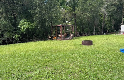Nestled on a canal off the Withlacoochee river, this delightful cottage is a terrific retreat for guests seeking a serene getaway. The cozy bedroom features 1 full bed, 1 bunk bed, and 1 twin bed, sleeper sofa in living room. Relax on back porch, at the firepit or gazebo with swing. Dock overlooking canal. One block to the Withlacoochee trail for biking and 1/2 block to park and boat ramp. Walk across the main road to a delightful Restaurant/bar with live music..