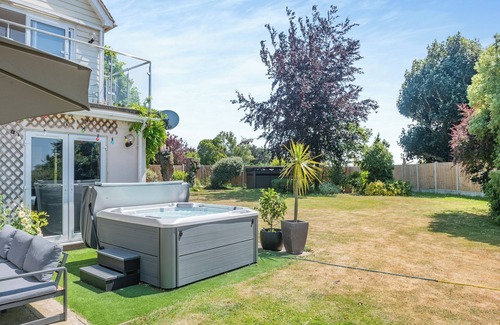 bathroom: spa bath, toilet Gas underfloor heating, electricity, bed linen, towels and Wi-Fi included. Logs for wood burner available locally. Cot, highchair and stairgate available on request. Welcome pack. Large, lawned back garden with patio, garden furniture and barbecue. Balconies. Children’s play area. Hot tub for 6 (private). Private parking for 4 cars. No smoking.. This bright and spacious property offers the perfect place for a family holiday or a retreat with friends. The six bedrooms have flexibility with their zip and link beds and sleep up to twelve people. The bedrooms are extremely spacious, some are on the ground floor and ideal for those less mobile and doors that access the garden. The upstairs bedrooms have balconies with stunning sea views, perfect for sitting out with your morning coffee. The spacious kitchen family room is ideal for cooking up a feast to be enjoyed at the large dining room table. The living room is on the first floor and makes the most of the stunning sea views and is the perfect place to cosy up in front of the wood burner on a cold wet day.