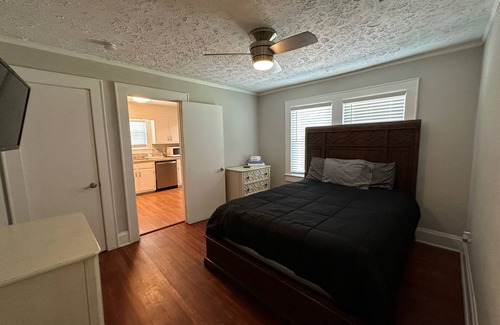 Mid century 3 bed 1 bath home that accommodates 8 guest comfortably. The interior provides 2 queen size beds, one king size bed, and one queen size sleeper sofa. It’s minutes from the interstate and ample restaurants. You’ll have exclusive access to the main level of the home, but not the basement or exterior shed. The home is situated on a half acre lot with a long drive that provides lots of parking..