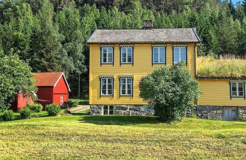This is a place where you come to relax, while being in a central location in regards to the many sights nearby. The oldest part of the holiday house has a lovely living room in a traditional style. The rest of the house was built later, with a newer living room. If you like older houses in a rural environment, this is the place for you. The charming yard consists of the main house, a traditional storehouse, small barn and garage. One of the bedrooms with a double bed, additionally has a double sofabed for extra bed space. 11 km to Valldalselva, a river with salmon and trout. You can also rent a motorboat in Valldal if you want to go fishing. Or you can fish from the wharf found 2,5 km away. 26 km to Tafjorden where you find an outdoor pool open from June to August. Another 2 km to the trout lake of Onilsvatnet. There is a sports centre in Valldal (11 km) with an indoor swimming pool, bowling, restaurant with dancing and pub.