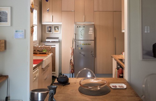 We have been living in this house for a decade. As we are both trained and practicing Architects, our personal space is extremely important to us. Over the years we have gathered custom furniture and decorative pieces that created a joyous and playful atmosphere we are now more than happy to share with our visitors. There is spacious living room, a dining room, a fully functional kitchen, a bathroom and a front outside terrace looking at the garden..