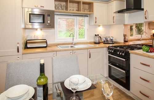 amenities: central heating Electric oven, gas hob, microwave, fridge/freezer. TV. Fuel and power inc. in rent. Bed linen and towels inc. in rent. Allocated parking for 2 cars. Wrap-around veranda with furniture. Sorry, no pets. Sorry, no smoking. Shop 0.6 miles, pub on-site, beach 1.3 miles. Note: There are steps to the exterior of the lodge. Note: Guests have access to a range of on-site pay as you go facilities , including a gym and indoor swimming pool. note: check-in from 4pm, check-out by 10am