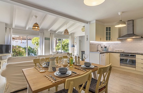 Just 3 minutes walk to the sea, this Individual Coastal Retreat is ideal for couples or families of four seeking a beach getaway. It has 2 bedrooms, each with its own bathroom, has recently been refurbished and is peacefully tucked away in this very quiet sought after location just 40 minutes from Malaga Airport. In a quiet residential area. the villa is beautifully furnished and decorated to a high standard with a spacious, bright living area. It has a secluded, pretty private walled garden. Air-conditioned and heated. All linen and towels provided including beach towels. Marbesa has a beautiful unspoilt beach which is popular with visitors but still remains uncrowded. Beach bars can be found along the beach for sunbathers to enjoy some food and drink whilst relaxing in the sun. Watersports in the form of jet skiing, surfing and sailing can be found nearby. Within Marbesa resort itself you will find plenty of cafe's bars and restaurants where you will find traditional Spanish cuisine such as seafood, tapas and tortillas, alongside International dishes. A selection of fantastic Spanish and International wines and beers can also be enjoyed. Nightlife in the resort is fairly quiet, the main premise of a night out in Marbesa is to take a walk along the quiet streets and stop for a bite to eat or something to drink. For those who wish to dance until dawn, nearby Marbella has many lively bars, discos and live entertainment. For guests bringing pets, the garden is fully secure..