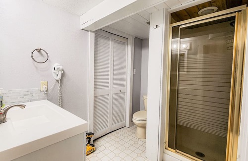 this cozy and charming lower level studio & former mother in-law suite has been beautifully renovated and is completely independent from the main home Complete with its own private coded entry on the side of the house, a dine-in kitchen, bathroom, laundry, a comfortable full bed for sleeping two, and a living area with smart tv for streaming your favorite programs.