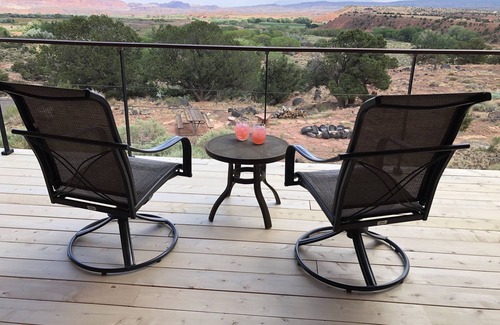 Spend the day exploring the deep canyons of Capital Reef National Park then watch the sunset relaxing on the deck overlooking the domes and cliffs of the park. Perched on a small tongue of land above Sand Creek enjoy the limitless views. The center of town is within walking distance. The outdoor fire pit is an ideal place to gather and tell tales of the adventures of the day as well as stargaze. Three full bedrooms comfortably sleeps 8 people but the cost of the rental changes as you add more people.