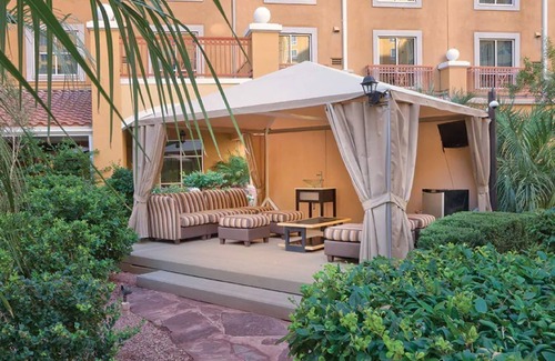 A Mediterranean-style vacation retreat just one mile from the Las Vegas Strip, the three towers offer exceptional views of the dazzling Las Vegas skyline, desert mountains, and the resort's lush courtyard. Lounge by the resort pool, pick up a coffee from the on-site Starbucks, or grab a bite to eat. Outside the resort, you can enjoy outdoor fun at picturesque locations like the Grand Canyon, Lake Mead, and Red Rock Canyon. Plus, catch the famous fountain show at the Bellagio. Indulge in local cuisine. Or place your bets at popular casinos on The Strip — like Caesars Palace, Harrah's Las Vegas, and Flamingo.