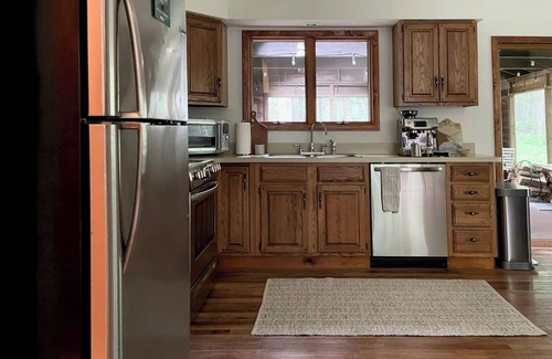 Escape to this serene, rustic-chic cabin tucked in the woods. With two cozy bedrooms, a stylish renovated bath, and thoughtful touches throughout—like a coffee-lover’s setup, curated local art, and family-friendly amenities—it’s the perfect blend of charm and comfort. Enjoy the screened-in porch, indoor fireplace, and stone fire pit for the ultimate unwind.