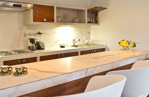 Dreamy ocean views steal the show at this newly remodeled condo - nestled in the luscious hills of Zihuatanejo. Start leisurely mornings on a private terrace with the glittering bay sprawled out beneath you. Sink into a big sunbed with a magazine, or simply soak up the dramatic coastal scenery. Later, grill up steaks and fresh lobster before gathering around a terrace dining table for an afternoon BBQ.