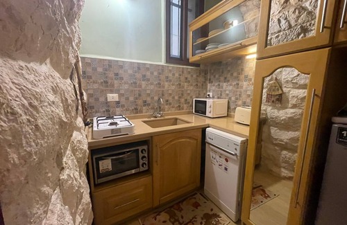 The stone vaults of this house are a striking feature of its architecture. The 1st vault consists of a bedroom, a kitchenette, and a bathroom. The 2nd vault consists of a spacious living Room. This house has been carefully preserved. The house is furnished with modern furniture. The house is supplied with electricity 24 hours a day with backup generator of 15 Amperes..