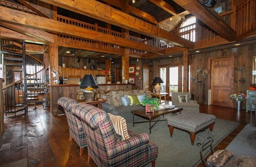 Built in 1990, this exceptional post and beam Lodge offers over 4,700 square feet with 5 bedrooms and 5 baths. Random-width barn-board paneling and heart-pine floors enhance rustic elegance in the shore-front surroundings.