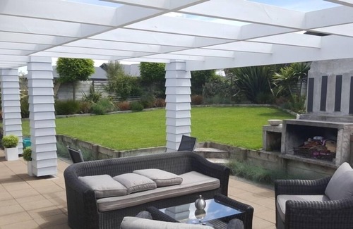 nice gardens on our 800sqm section with off street parking for 5-6 vehicles Our outdoor area has a outdoor fireplace with comfortable outdoor furniture and dining area setting 6.