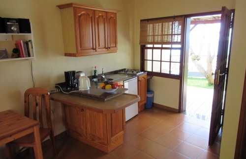 Small and cozy: The Apartment 'Kati' on the top three levels of the apartment complex 'El Gallo' is perfect for up to 2 people who travel a lot and appreciate a quick tidy apartment know. Nevertheless, everything is in place, which ensures a leisurely pace: The built-in living room kitchen is equipped with refrigerator including freezer, 2-burner gas stove, coffee maker, toaster, kettle, with enough cooking utensils, crockery and glassware. Right next door guests can make on a cozy sofa, listen to CDs or watch German television and radio programs on the modern flat screen. In the adjacent bedroom to rest on good 1.90 x2 0.00-meter bed mattresses under blankets in the German standard. The large wardrobe is a safe installed to secure valuables leave 'home' can. Small, but is also fine for the bathroom: The plain white of shower, sink and toilet is immersed by a colorful Tiffany Window with sea motif in a sunny light. From the small, covered with a pergola terrace you can enjoy beautiful.