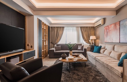 Nestled in the shadow of the Acropolis lies the perfect stay for your Athens visit. Acropolis Luxury Living is a spacious, tranquil 2-bedroom apartment, centrally located in the charming district of Koukaki and just a few minutes walk from the Acropolis Museum and the Syggrou Fix and Acropolis metro stations. Recently fully renovated, its modern, secure and beautifully styled interior is serviced and fully equipped with the latest amenities, making it ideal for long or short stays, leisure or business.