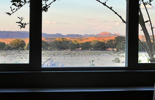Magnificently sited on 53 acres. Horse barn, corral, pasture, alfalfa fields. Great views from every room. Fully equipped kitchen, recently upgraded. Comfortable dining area for 6, living room with fireplace, conversation area, dual CD and wifi sound system, library with TV, game room with mini-billiards table, chess. 2 BRs, each with fireplace, private bath. Bedroom 1, king-sized bed, desk, Capitol Reef sunrise view from bed. Bath has double sinks and walk-in shower, also with views! Beyond, a walk-in closet with washer and dryer. (Another washer/dryer in utility room.) Bedroom 2, two twin beds put together to make king. En suite bathroom. Both BRs very large. Perfect for 2 adult couples traveling together. Each has privacy but lots of common space. Owner's bedroom won't be occupied when you are there and kept locked. But available by special arrangement. Library well-stocked with novels and art books. Eclectic and interesting art collection including Chinese scholars' rocks and photographs. Views are the most staggering works of art, and all windows designed to frame them. BBQ available. Ping-pong table in garage. Great base for exploring one of the most beautiful, least spoiled areas of America. Excellent management by April Morrison. Perfect for family gathering. Florida-based owner's summer home, only available October through May, which includes some very beautiful times. Snow is rarely deep. Good hiking. Magnificent night sky all year round. A place for people who appreciate beauty in art and nature, especially lovely in winter and well-laid out for Thanksgiving, Christmas celebrations..