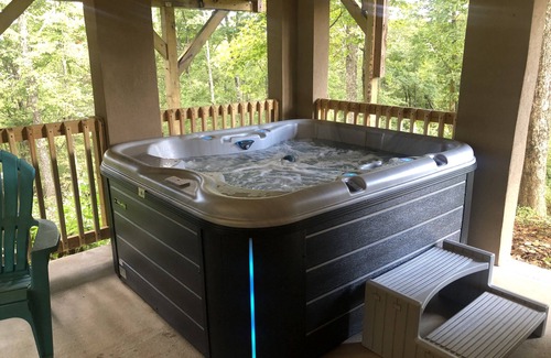 there is a walkout basement which contains a game room We have Galaga, Out Run, and a convertible gaming table that has mini pool, mini ping pong, and mini air hockey. There is a hot tub located on the downstairs covered patio so you can enjoy it rain or shine. There is also a washer/dryer located in the basement in case you need to do laundry after a few days of hiking and exploring the beautiful outdoors.