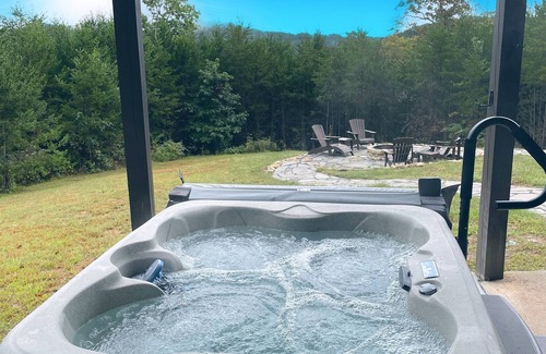 king bear cabin boasts 4 spacious bedrooms and 35 elegantly appointed bathrooms. Relax in the hot tub or challenge friends and family to a game in the entertainment-ready game room. With breathtaking views of the Blue Ridge Mountains, you'll enjoy both luxury and natural beauty throughout your stay.