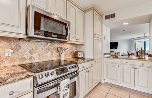 indulge in the luxury of a fully renovated and tastefully refurnished penthouse adorned with high-end furniture and elegant decor by a professional interior designer The first floor welcomes you with an oceanfront living room featuring comfortable furniture, an electric fireplace, and a large smart flat-screen TV. Every corner of the living room, dining area, and kitchen unveils breathtaking ocean views. Step onto the spacious oceanfront balcony for a mesmerizing scene of the ocean and island.