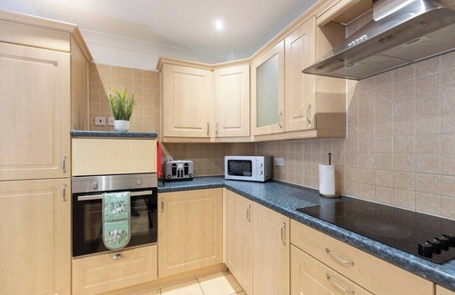 the whole group will enjoy easy access to everything from this centrally located place An iconic town centre building which can accommodate friends, couples and families to go and explore all the town has to offer. It's a large and spacious flat that has a bedroom at either end; whilst also having its own bathroom off each bedroom (one being an ensuite).
