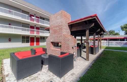 You get the best value for money in this newly upgraded, pet-friendly property with modern facilities and amenities. Each guest room has all-new furniture, mattresses, linens, appliances, and luxury bath products that put you at ease. Make the most of the property’s resort-style services, enjoy your delicious breakfast every morning, and go for a splash in the pool to feel fresh, or head out to the fitness center to get energized throughout the day. The property also features a quiet and ergonomic laptop workspace with high-speed WIFI access to let guests handle their daily work priorities. Take delight in our self-serve beer & wine, 24-hour marketplace, and outdoor fireplace under the pavilion. You can always opt for a quiet evening watching your favorite channel or catching up with world news.