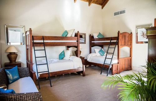 the villa is comfortable, functional, cool and bright It offers a unique design with a main area with living, dining and kitchen areas, as well as a small bedroom with its own private bathroom. The other rooms are built as private units around the pool and garden area. Two Bedrooms with two queen beds each, large walk-in closets and bathrooms. The Master bedroom has one king sized bed, a large bathroom and a private deck with stunning views. Your favorite place will most likely be the Palapa, with its stunning views of the course and the bluest waters of the Caribbean Sea. The pool and outdoor shower are right there and it is the most relaxing and comfortable spot in the Villa. The kitchen is modern, and fully equipped, with marble tops..