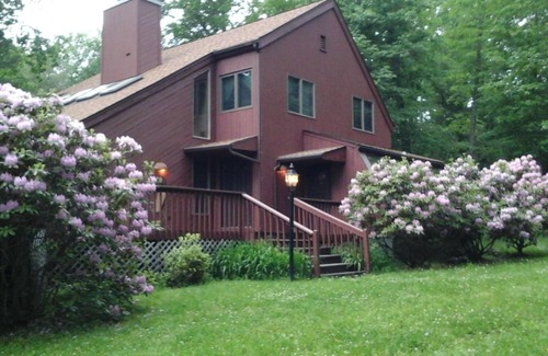 in addition to being on a lakefront there is easy access to other lakes, streams, for hiking, fishing, river rafting, zip-lining, tubing, canoeing, horseback riding, and in the colder weather, skating and ice fishing off private dock plus snowboarding and tobogganing on the gently sloping area on huge private lawn