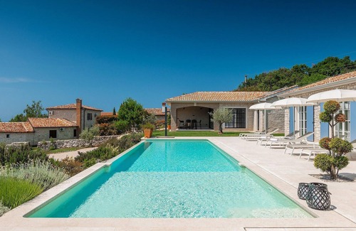 Are you looking for a spacious villa with a beautiful garden, private pool and delightful interior close to tourist towns? With its beautiful stone façade and blue Mediterranean-style shutters, this wonderful villa also looks inviting from the outside. In the middle of the large garden with numerous sun loungers and plenty of parasols for those who prefer to stay in the shade, there is an inviting, large private pool. The pool stretches out so that you can enjoy the beautiful, green panorama of the Istrian hinterland while relaxing on a sun lounger in the midday heat. In the well-kept garden you will also find a barbecue and covered open-air dining area with enough space for communal dinners.