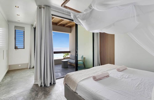 Villa Tjitjak has 5 double bedrooms and 5 bathrooms. All bedrooms are equipped with air conditioning and a fan. There are two bedrooms on the ground floor, and the other three are upstairs, offering ultimate privacy and beautiful views of the ocean and garden.