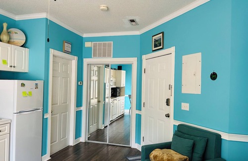 Very cute studio for 2 people. We have comfortable queen bed, pull out futon chair bed. white kitchen is combined with the room. We have washer and dryer, table, private porch where you can relax. Tanger Outlets and Walmart just 4-5 minutes to drive. Many restaurants within 5 minutes to drive. Private beach 5-8 minutes within walking distance . The amazing pool is on the other side of the house. New painting in the room and toilet, new refrigerator bigger size. We allow 2 small dogs or 2 cats..